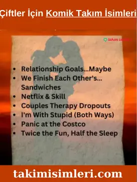 Çift takım adınıza mizah katmak, eğlenceli yönünüzü sergilemenin harika bir yolu olabilir. İşte çiftler için 30 komik takım ismi: